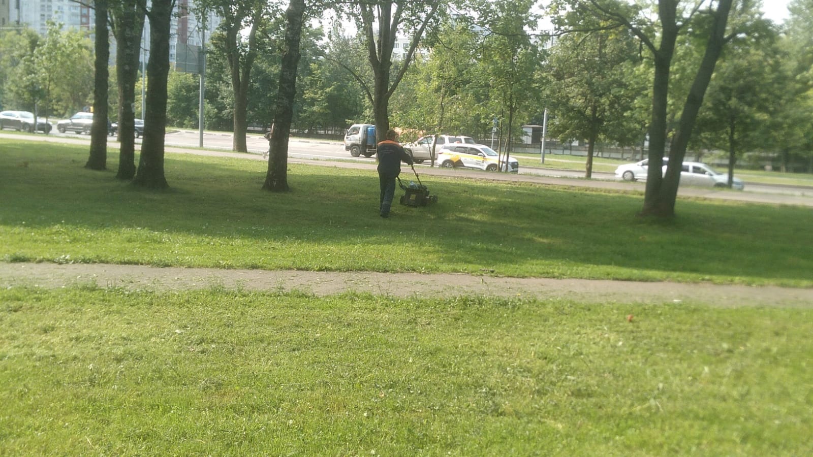 Сотрудниками ГБУ «Жилищник района Коньково» проводится покос видовых газонов по улицам Миклухо Маклая и Архитектора Белопольского.