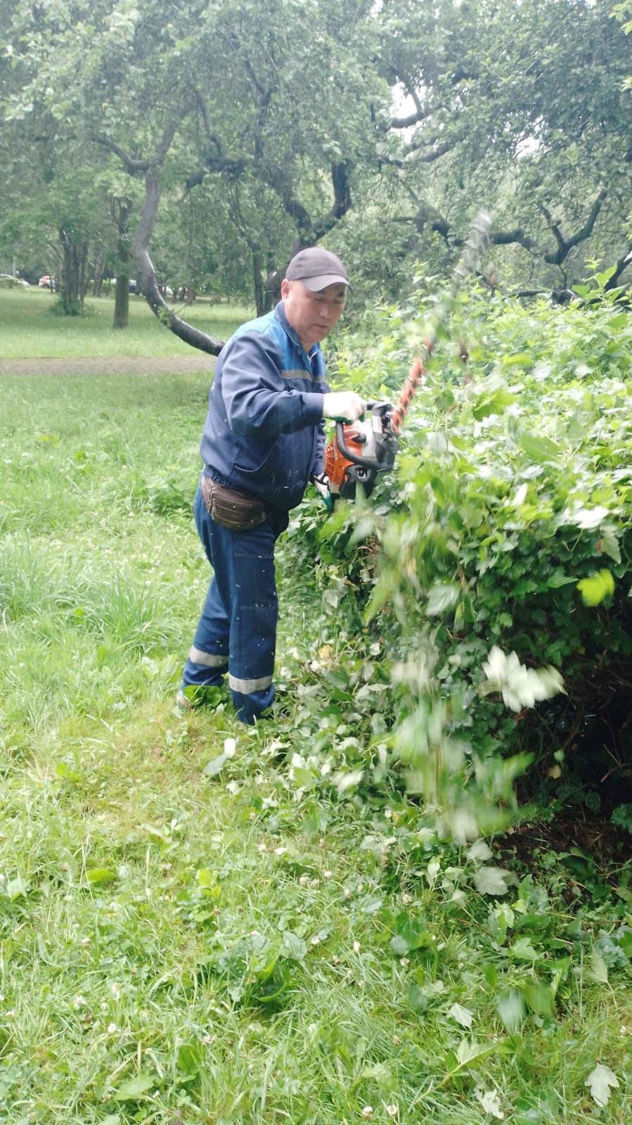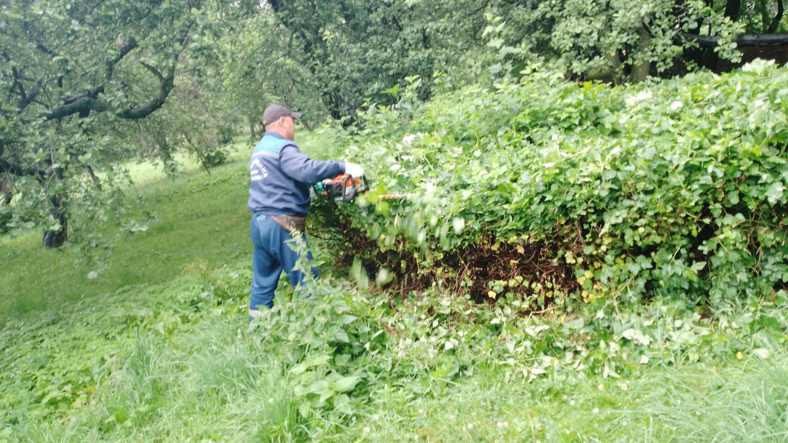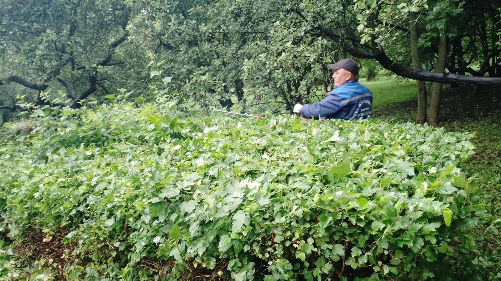 Сотрудниками ГБУ Жилищник района Коньково Участка 1 проводятся работы обрезки кустарников в Яблоневом саду.