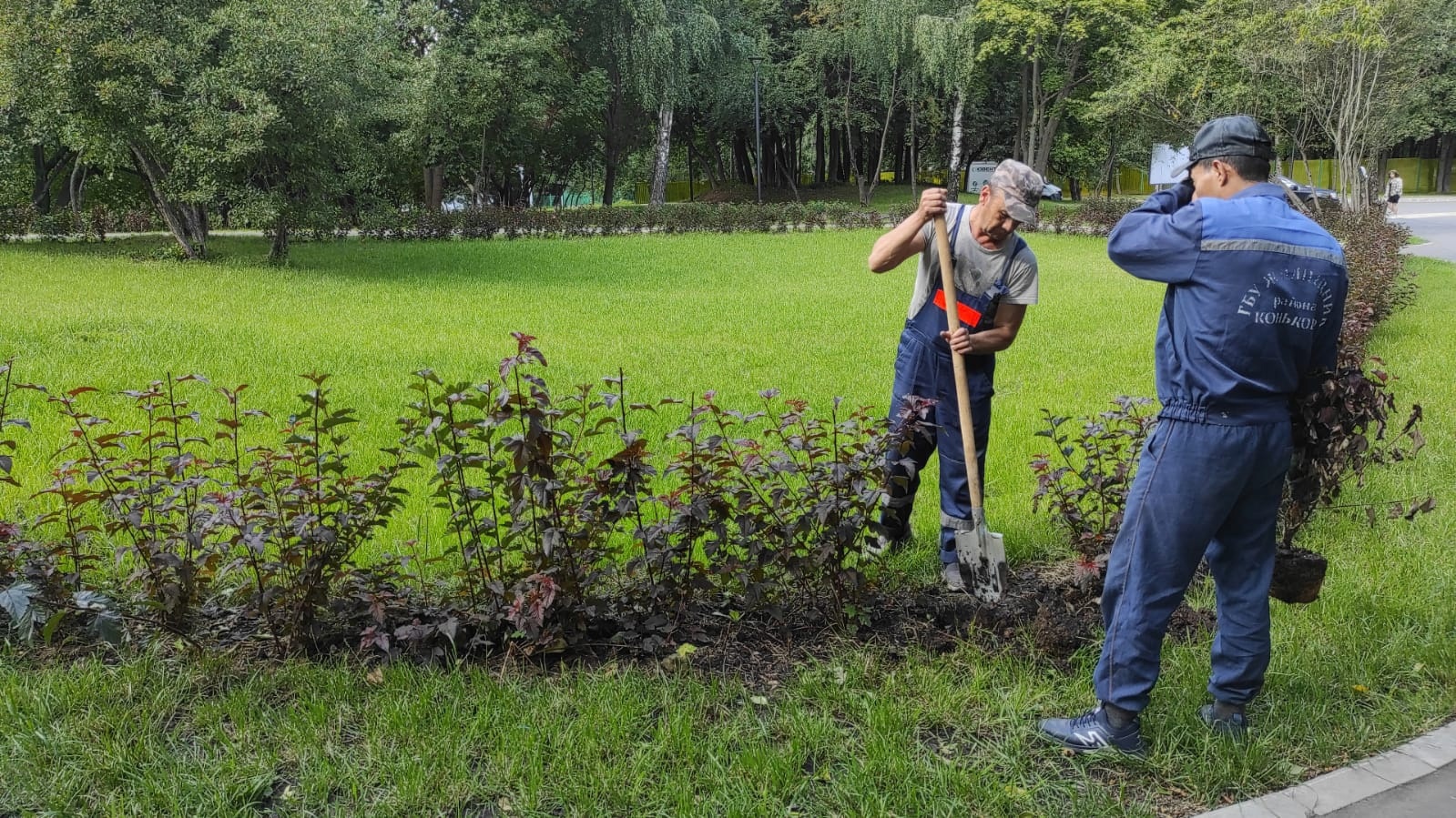 Сотрудниками ГБУ «Жилищник района Коньково» была произведена высадка кустов по улице Профсоюзная от дома 103а до дома 105