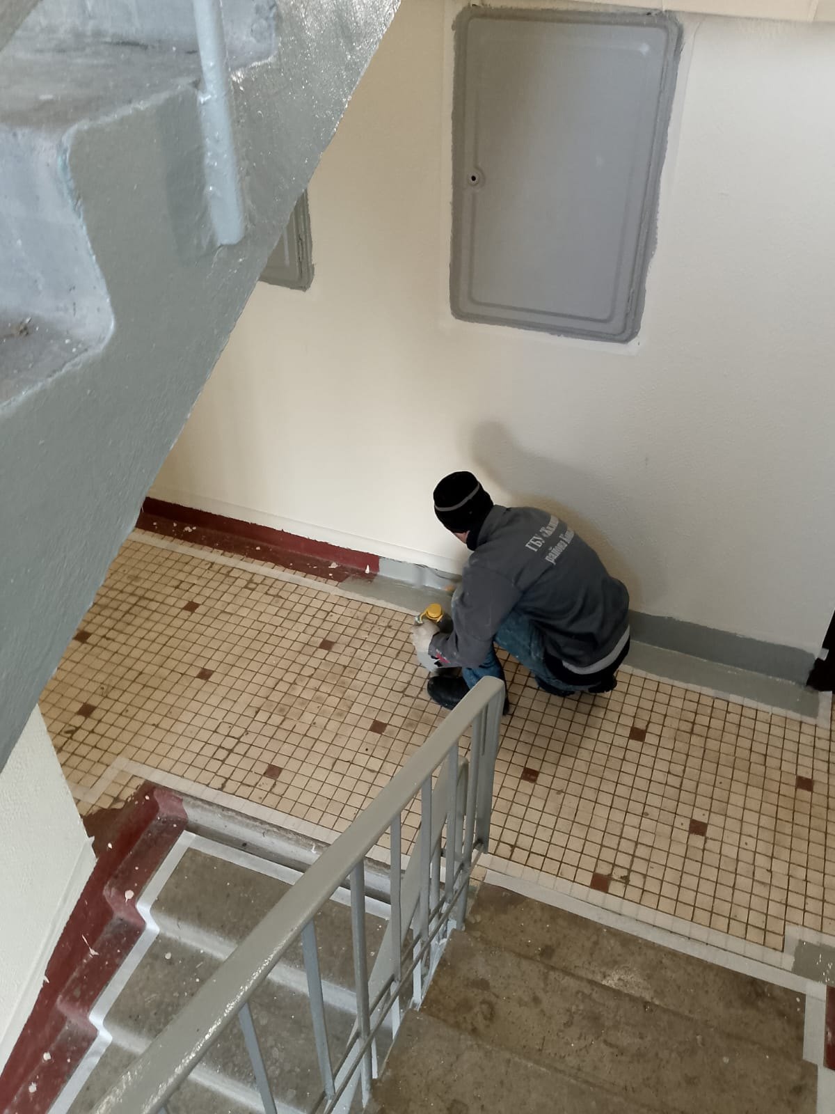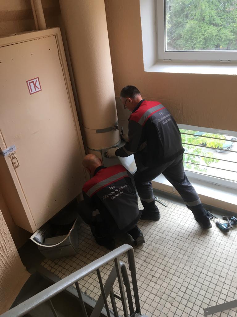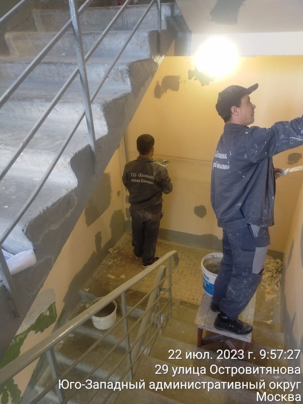 Сотрудниками ГБУ «Жилищник района Коньково» проводится планово-технический ремонт подъезда №2 по ул. Профсоюзная д. 97