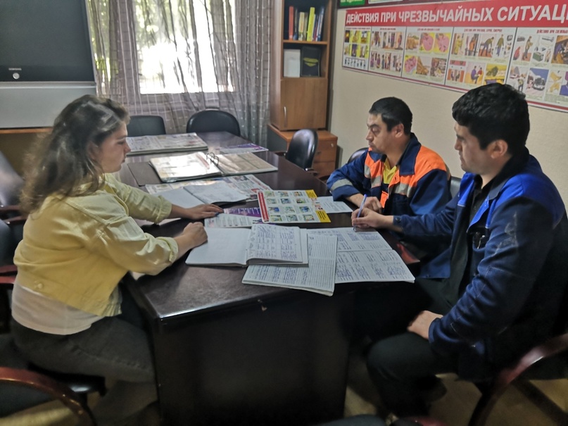 Начальник отдела ГО ЧС и ОТ проводит методическое занятие по использованию СИЗ на участке № 3