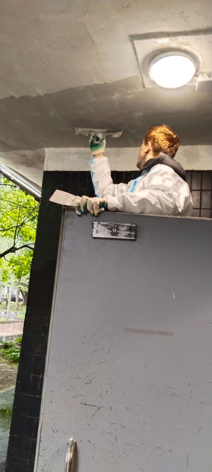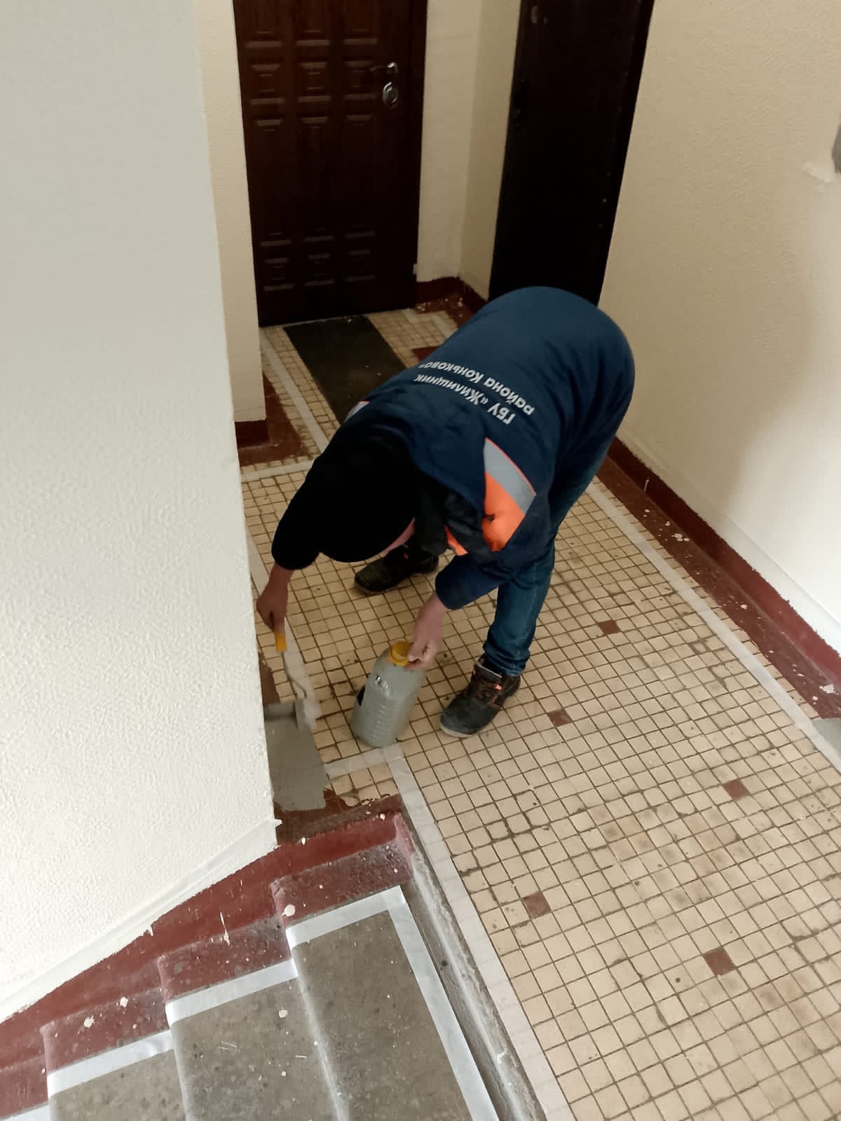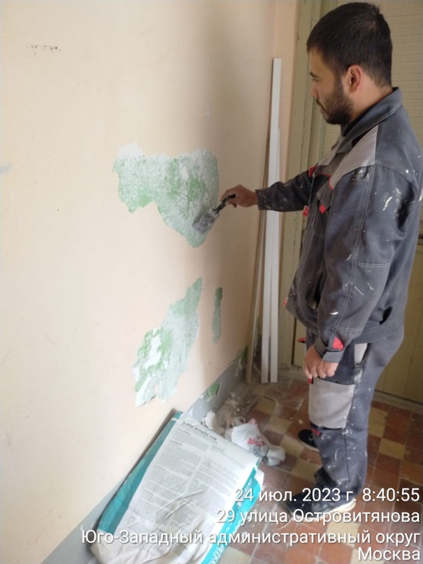 Сотрудниками ГБУ Жилищник района Коньково участком #1 проводится планово текущий ремонт подъездов по адресу ул. Островитянова 29/120