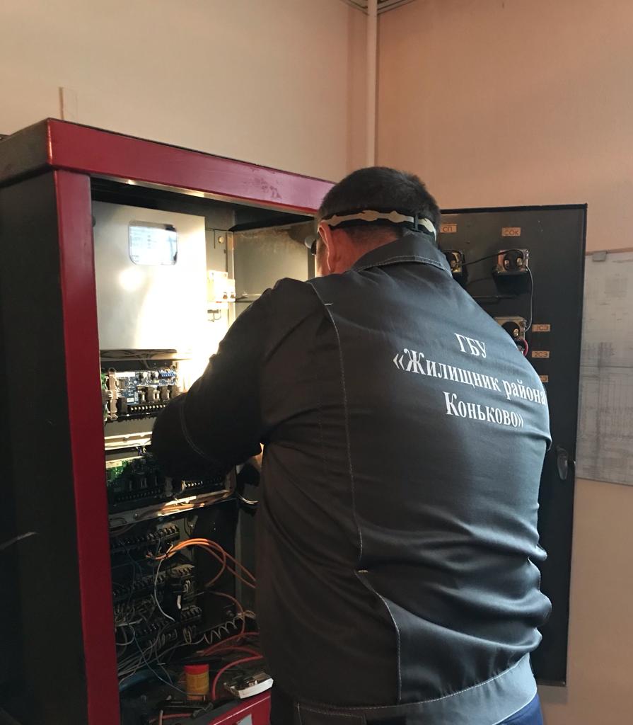 Мастерским участком №7 ГБУ «Жилищник района Коньково», проводятся работы по обслуживанию стационарных электроплит (осмотр, очистка окисления контактов, проверка надежности клемм, проверка работы переключателей мощности конфорок и жарочного шкафа).