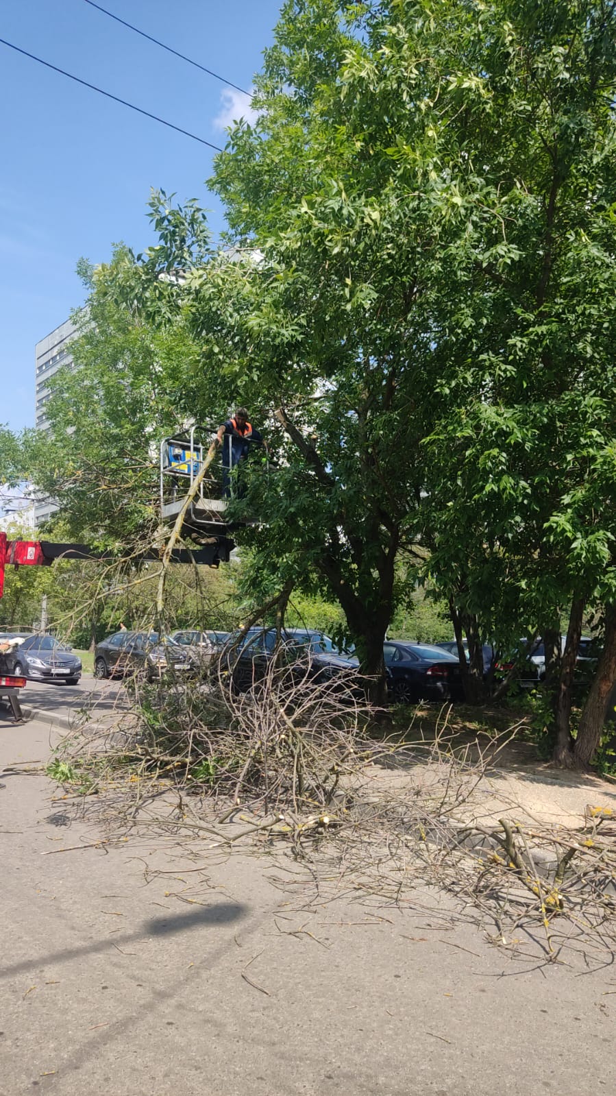 Сотрудниками ГБУ «Жилищник района Коньково» проводится удаление сухих веток.