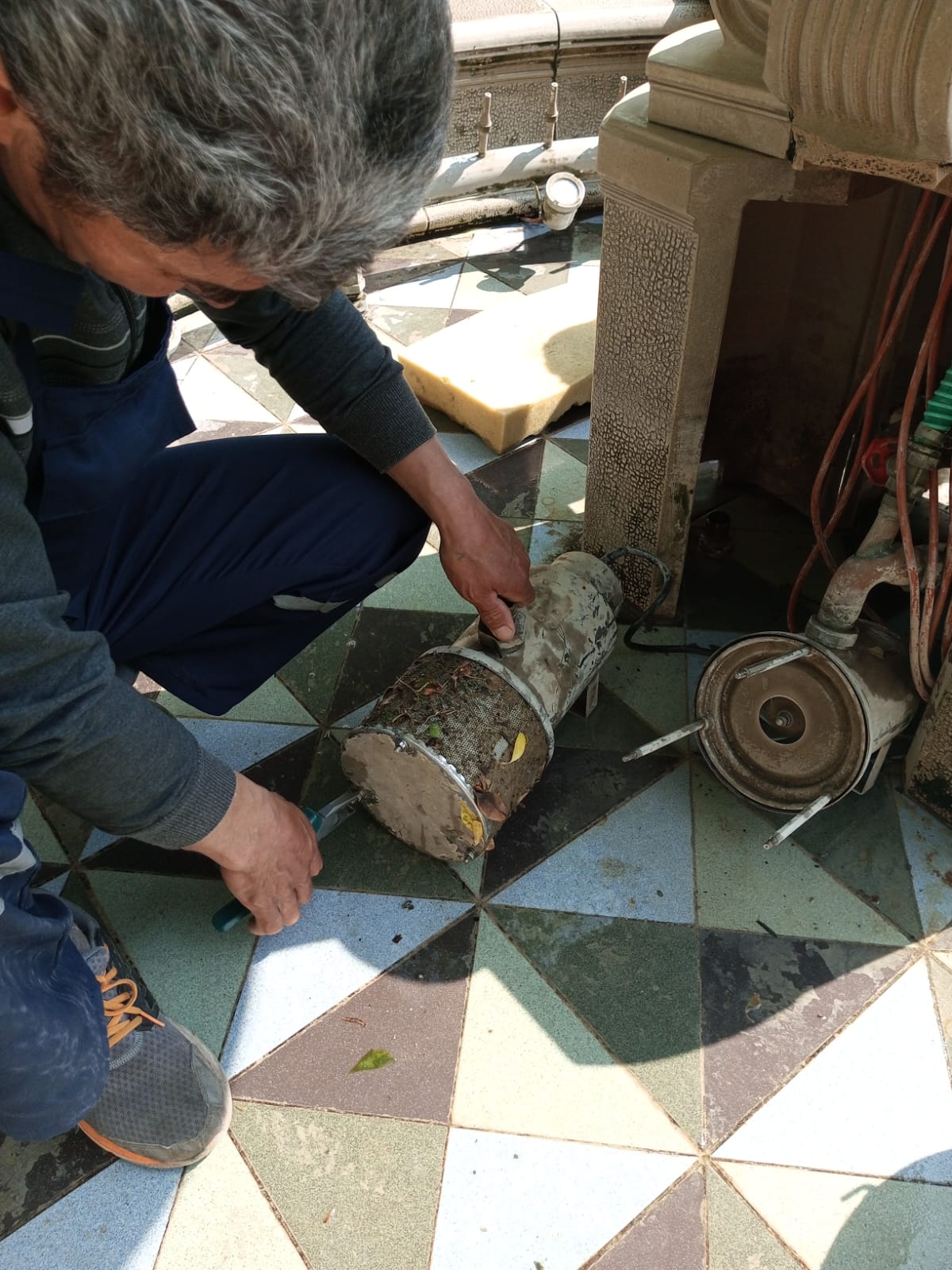 Сотрудники ГБУ «Жилищник района Коньково» проводят ремонт фонтана ⛲ на ул. Профсоюзная д. 91/1