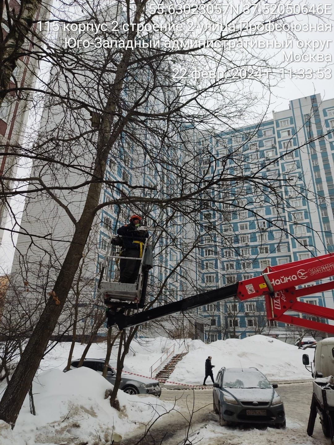 Сотрудники ГБУ «Жилищник района Коньково» проводят санитарную обрезку деревьев на ул. Островитянова д. 32