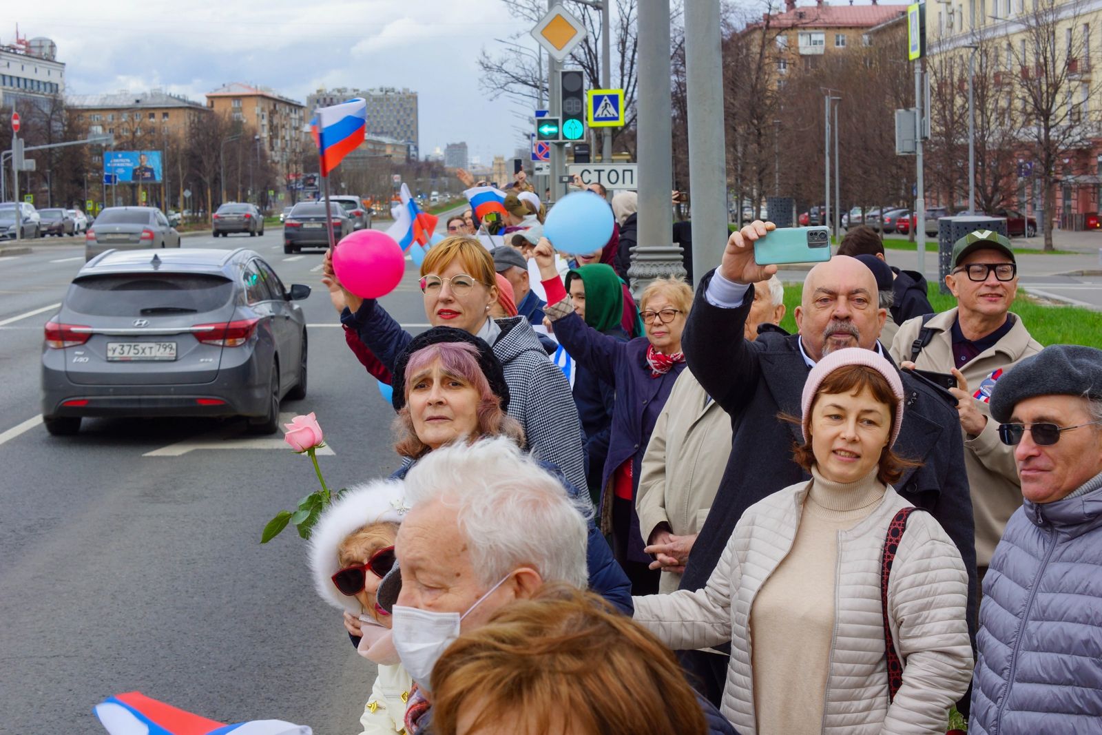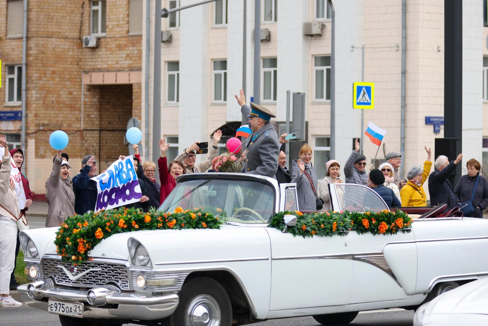 Белый кабриолет с цветами, «Чайка» ГАЗ-13, ещё она «Чайка» — чёрный седан и «Волга» ГАЗ-21 промчались в воскресенье по Ленинскому под восторженные приветствия горожан и приветственные сигналы клаксонов. Видя лучезарную улыбку Гагарина, улыбались в ответ и прохожие. С шарами и плакатами 1961 года — «Космос наш», «Чур, я второй!» — встречали на перекрёстках кортеж волонтёры акции.