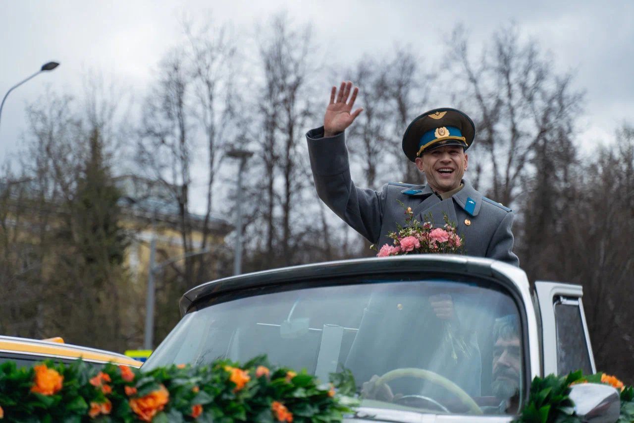 В полдень кортеж Юрия Гагарина проехал по Ленинскому проспекту – от ИКИ РАН до смотровой площадки Российской Академии Наук. Именно здесь 63 года назад его встречали тысячи восторженных москвичей.