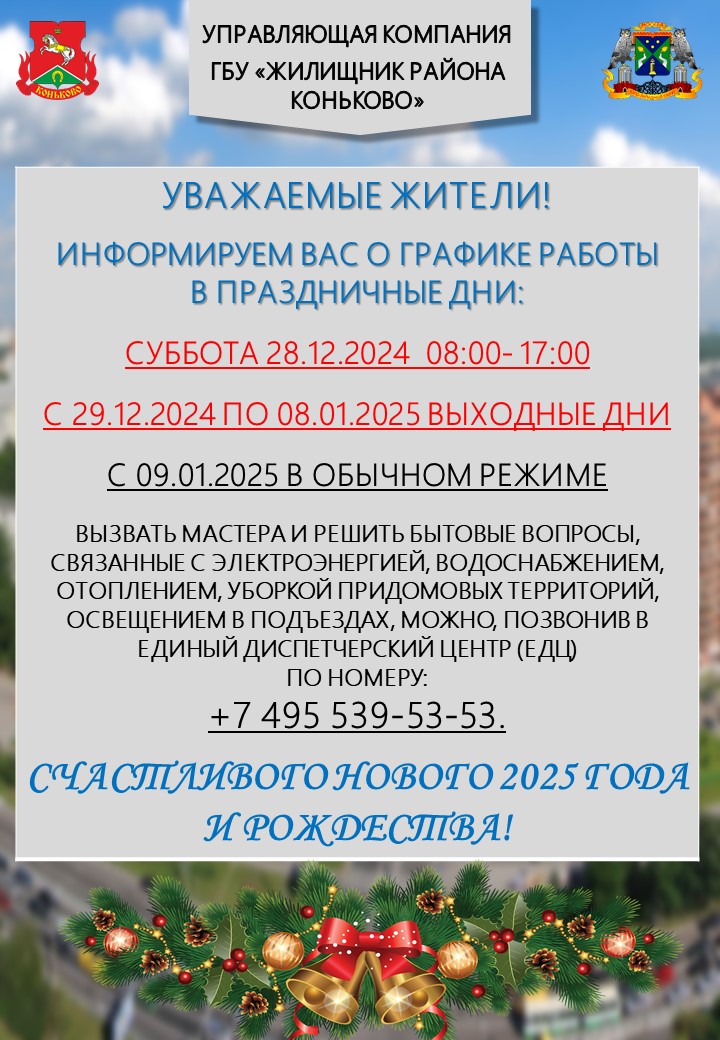 Уважаемые жители! ГБУ «Жилищник района Коньково» информирует Вас об изменении тарифов за жилищно-коммунальные услуги с 01.01.2025 г.